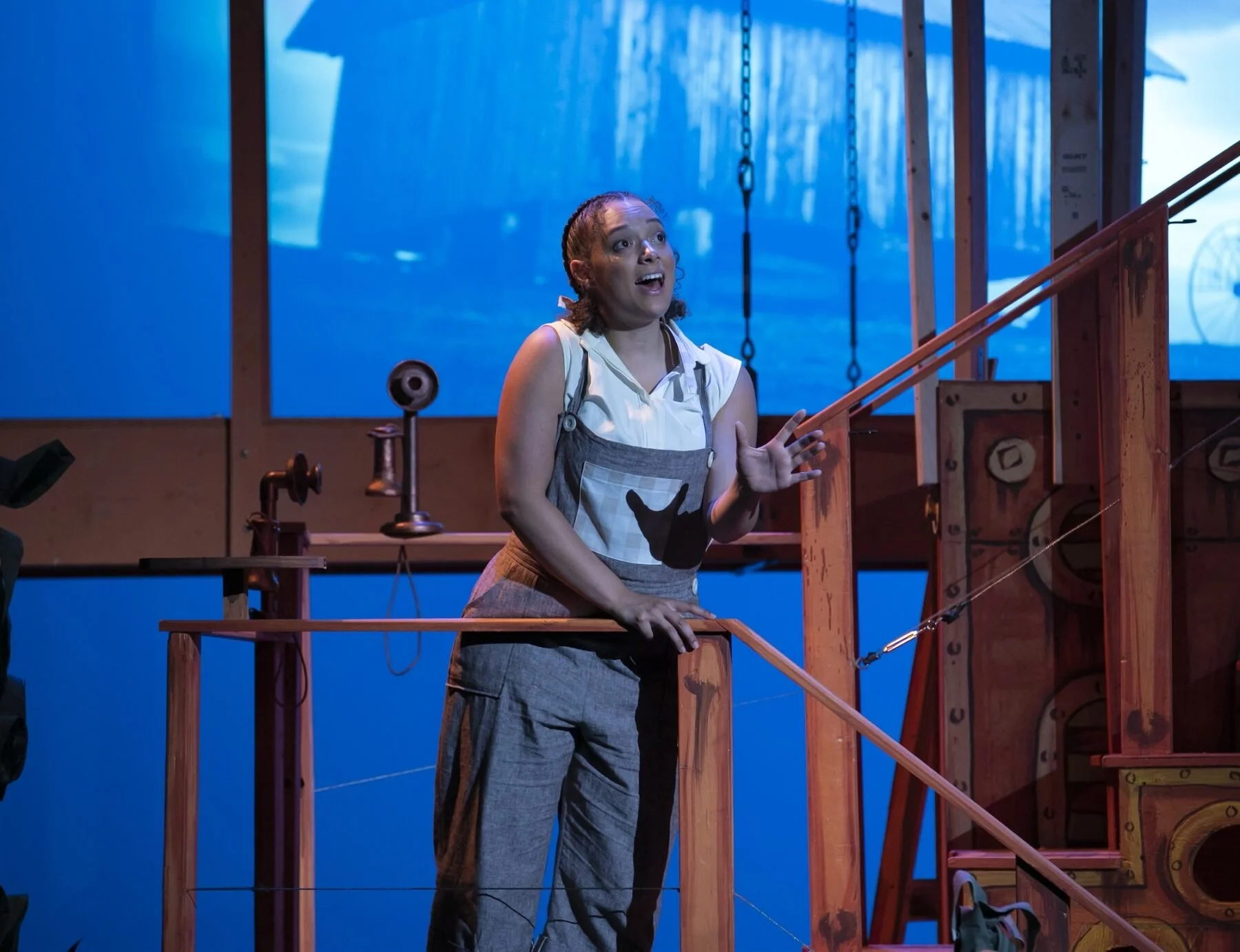 Miss McLeod singing during a musical performance.